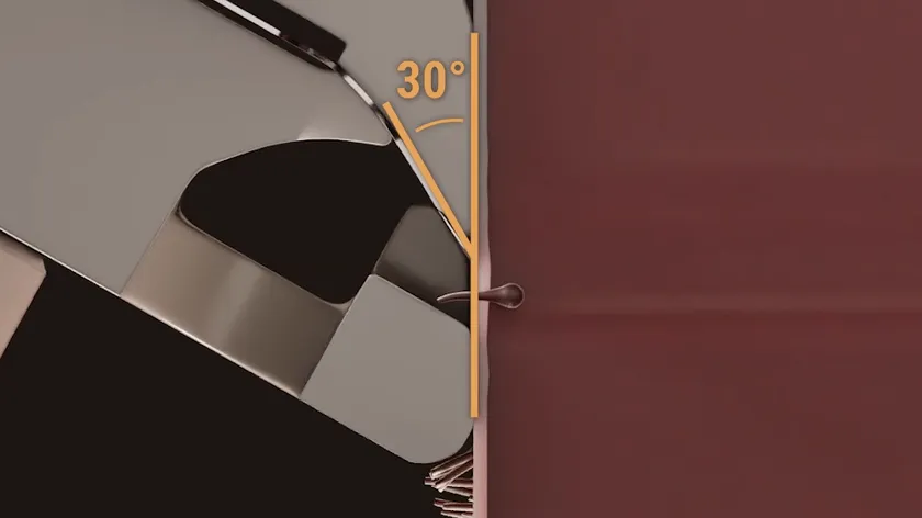 刃の角度は皮膚とシェーバーが接触するときに、30度になるように設計されており、理想的な角度で剃ることが可能です。