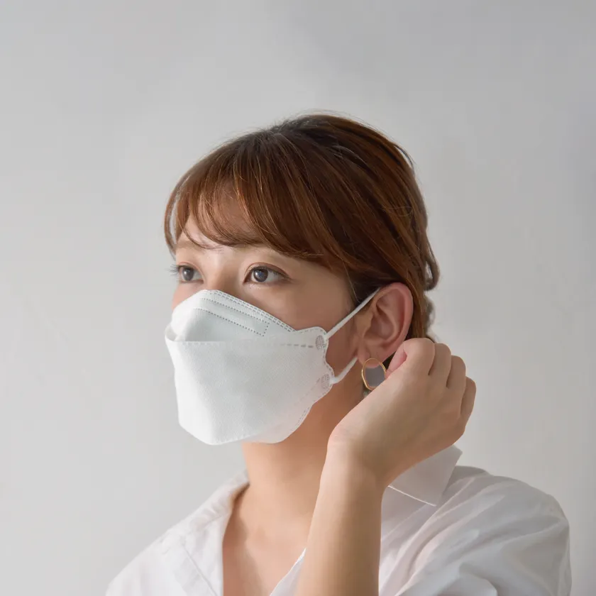 マスク全体のマチが上部と下部に分かれているため、鼻筋からフェイスラインまでがスッキリと。シュッとした輪郭で小顔効果も!