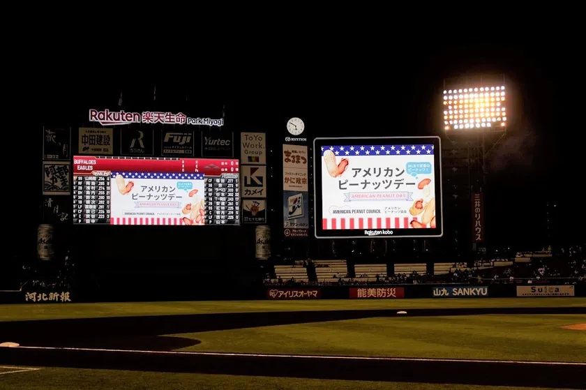アメリカンピーナッツ協会(駐日事務所:東京都港区南青山、代表:天野 いず美)は、2021年10月25日(月)に楽天生命パーク宮城(宮城県仙台市宮城野区)で行われた、日本プロ野球パ・リーグ 東北楽天ゴールデンイーグルス VS オリックス・バファローズ戦にて、当協会協賛試合の「アメリカンピーナッツデー」を開催、アメリカンピーナッツについて、日本の皆様やプロ野球ファンに向けた普及活動を行いましたのでご報告いたします。