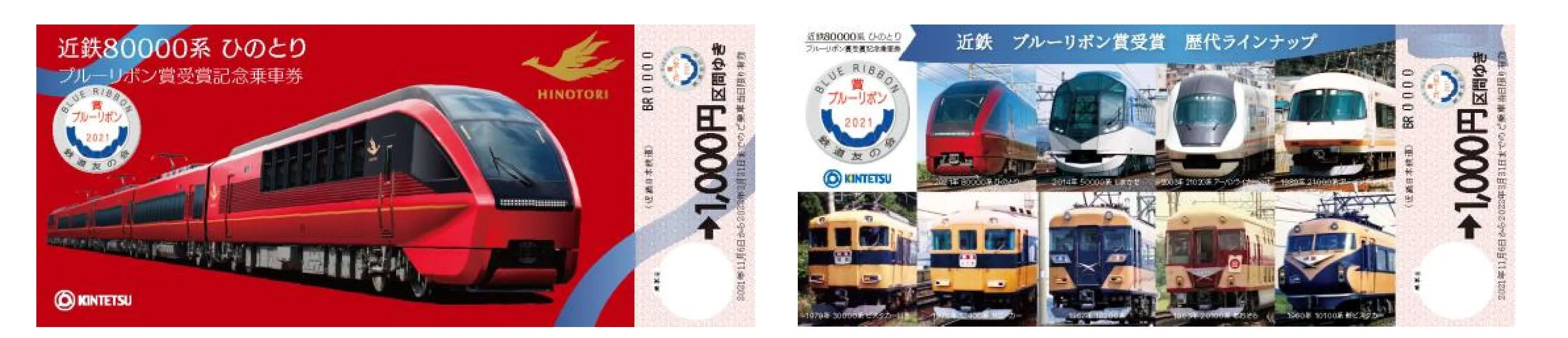 (3)内 容 近鉄80000系「ひのとり」ブルーリボン賞受賞記念乗車券