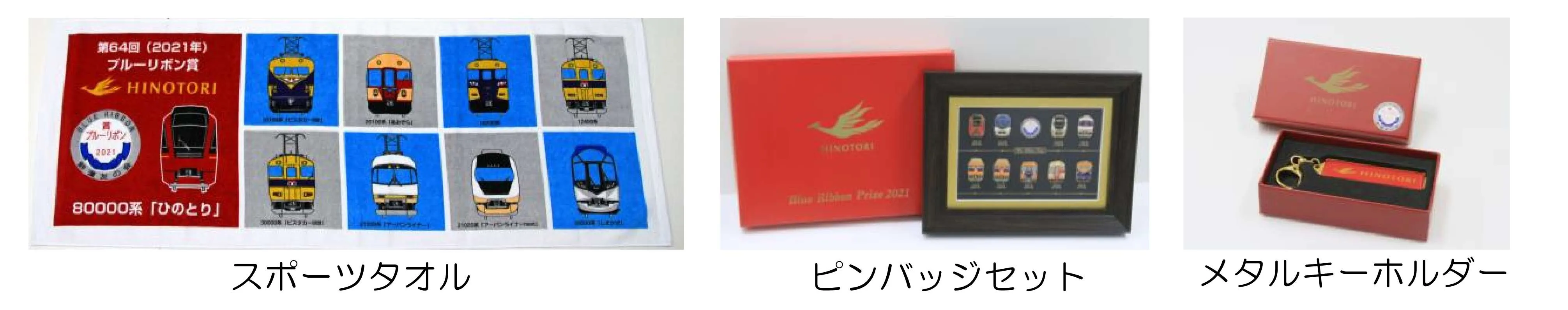 (1)「ひのとり」ブルーリボン賞受賞記念 スポーツタオル、ピンバッジセット、