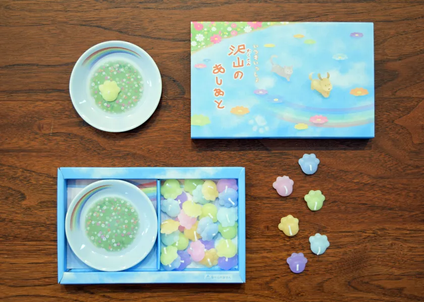 肉球の形をしたろうそく「沢山のあしあと」が11月4日に発売! ペットロスで落ち込む方への贈り物に最適 ろうそくを虹のお皿に浮かべてあの子の軌跡に想いを寄せる