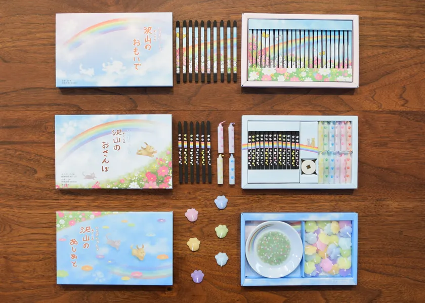 人気のペット供養シリーズ第三弾 虹のふもとで遊んで待っていてね。そんな想いをお線香、ろうそくに託します。