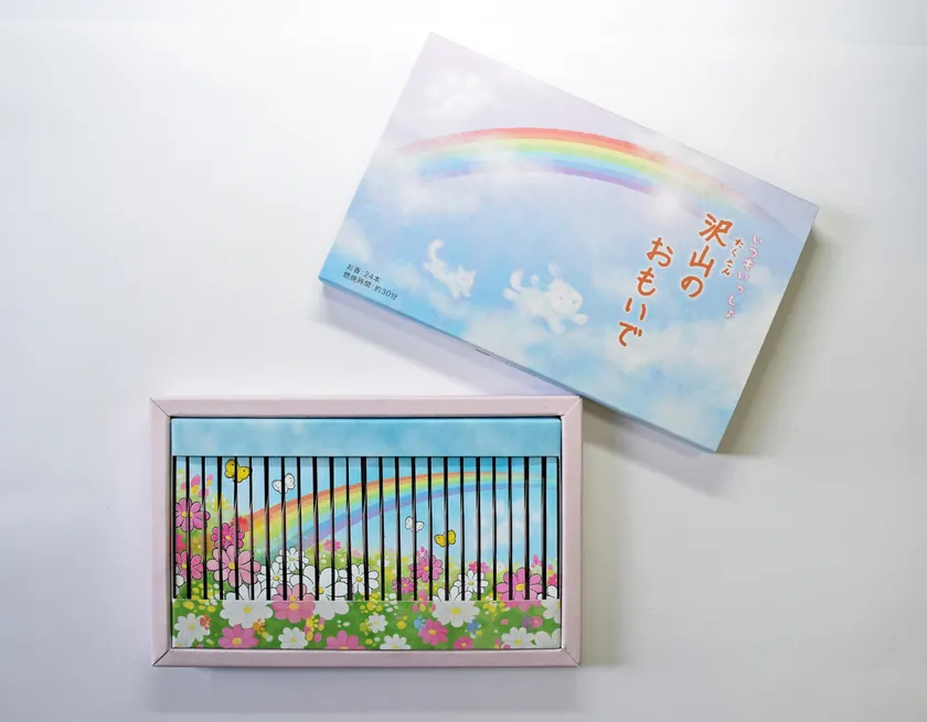 虹を描いたお線香12本とあしあとを描いたろうそく12本のセット