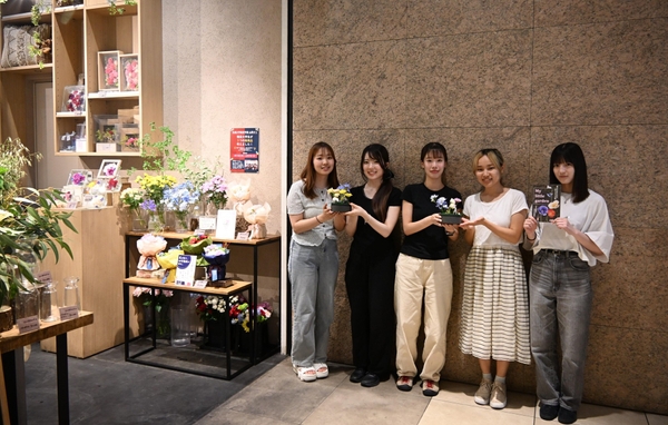 名城大学経営学部・山岡隆志教授(専門:マーケティング、消費者行動論)のゼミナールでは、マーケティングを学ぶ学生たちが実際の新製品開発に挑戦しています。今年も昨年に続き、株式会社日比谷花壇とのコラボレーションにより、学生のアイデアが製品化され、6月16日から29日まで日比谷花壇 KITTE名古屋店にて限定販売されました。