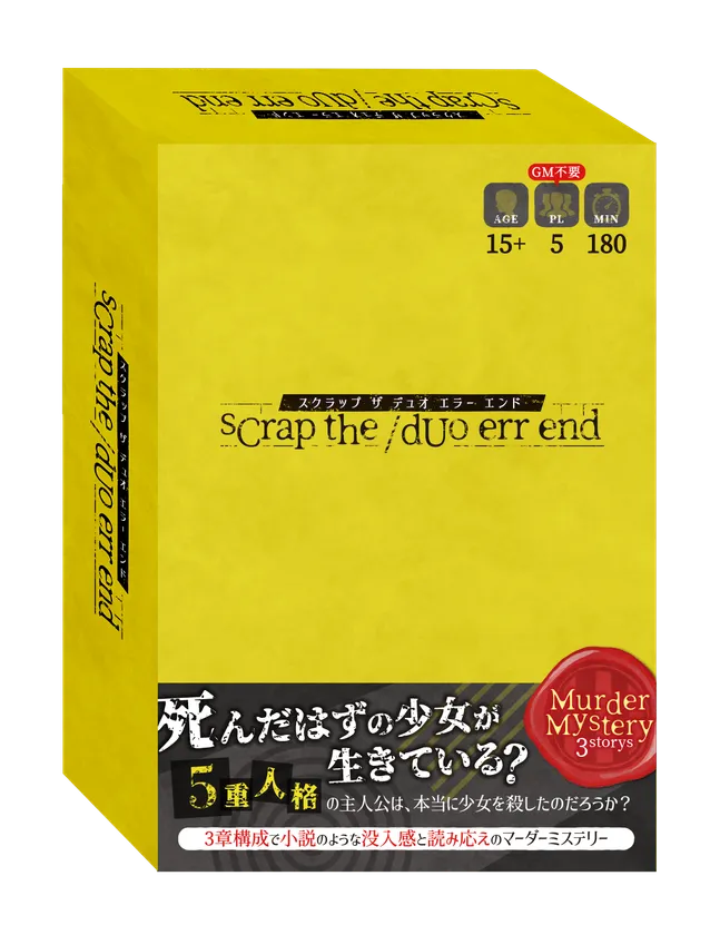 大阪人狼ラボがマーダーミステリーを発売するのは本作で3作品目です。そのすべてがシナリオブック(キャラクター情報やあらすじ、ヒントが書かれたもの)が文庫本サイズで60ページ以上。大量の文章を読んでいただく点が、一般的なマーダーミステリーと異なる点です。1作目の『sCrap the/dUo err end』は、「物語に没入した」、「重厚感がある」、「形式が新鮮でこれまで体験したことがないようなマダミスだった」、「満足感と達成感と疲労感がすごい」などの感想をいただいております。