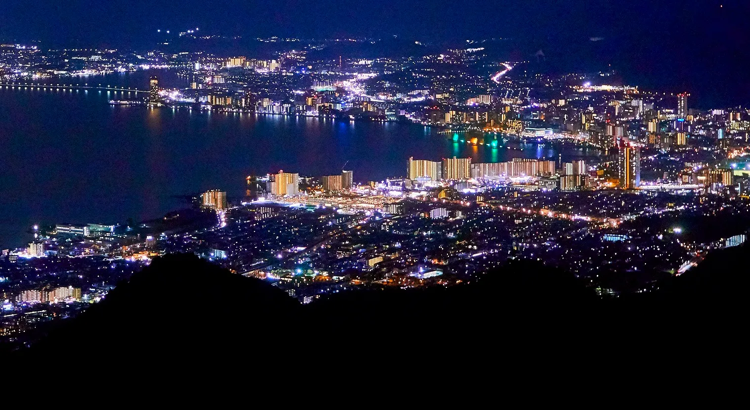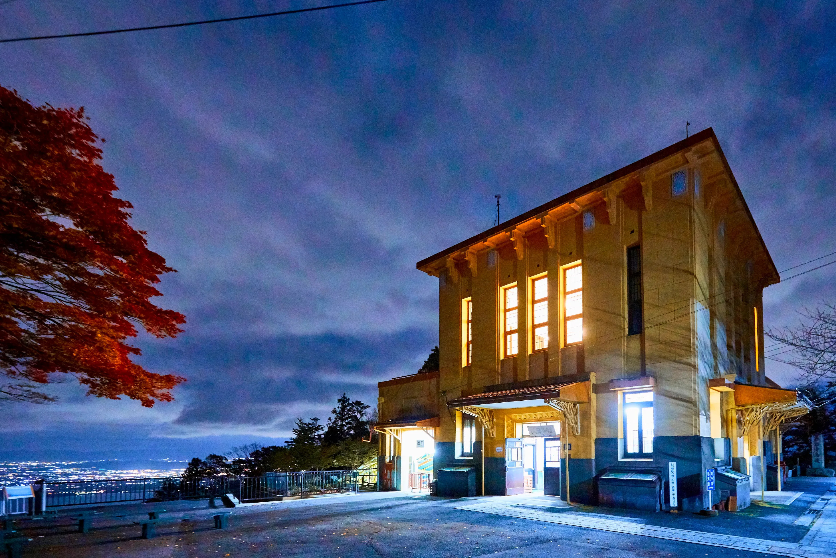 国の登録有形文化財「ケーブル延暦寺駅」のテラスや隣接の展望台からの大津市街地・琵琶湖北部・京都市街地3方面の美しい夜景をお楽しみいただけます。