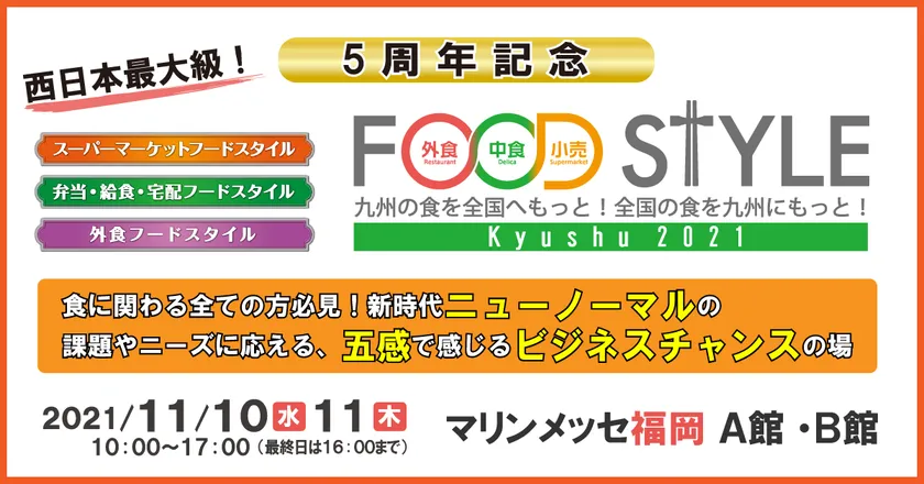 <5周年記念> 40都道府県から900社以上が出展! 食の商談展示会『FOOD STYLE Kyushu 2021』を マリンメッセ福岡で開催!11/10 オープニングセレモニー開催決定