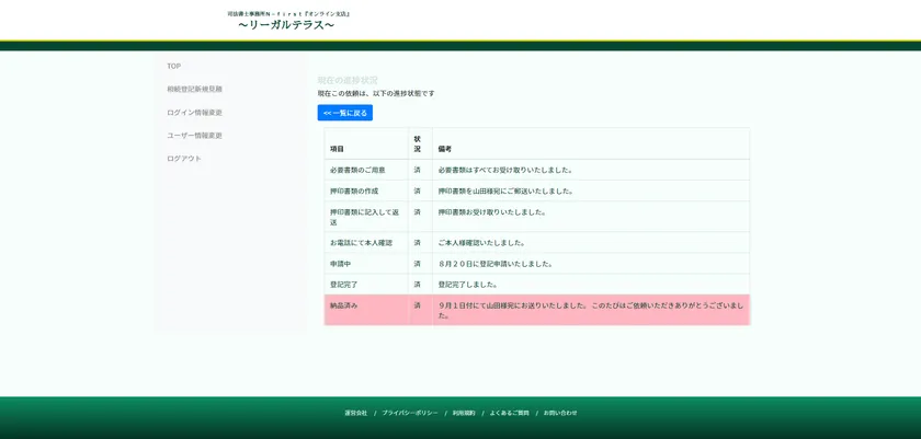 ■即時見積もり+司法書士に依頼後の進捗を可視化
