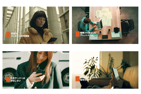 ・各グループチャットに個々の独立ネットワークを創成しプライバシーの絶対確保