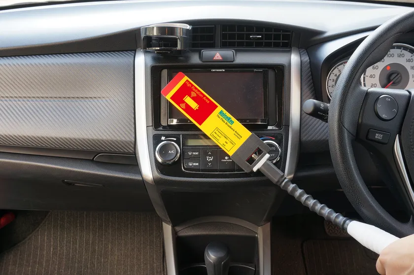ISO 11452-9は、このような状況を想定した『近接照射イミュニティ試験法(車載機器向け)』の国際規格で、ポータブル無線機を模擬したアンテナより放射される電磁界を電子機器に晒すことで耐性を評価する試験となり、自動車メーカーや車載電装品メーカーが試験を行う際の準拠規格として採用されています。