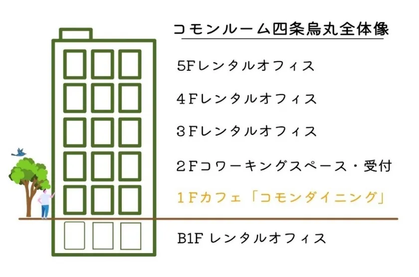 カフェ付コワーキングスペース『コモンルーム四条烏丸』が 12月2日オープン、元老舗呉服屋ビルを丸ごとフルリノベーション