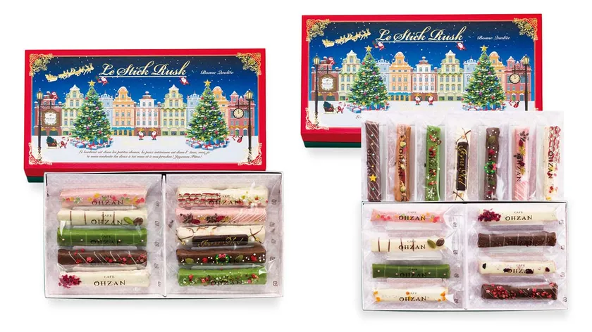 大人可愛いをテーマにチョコレートラスクを展開するCAFE OHZAN(カフェ オウザン)。今年のクリスマス仕様の限定ラスクは、可愛らしさに楽しさをプラスして、大人気商品・スティックラスクとキューブラスクで登場です。