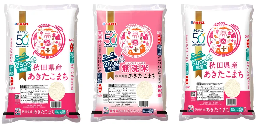 50周年の感謝を込めて、期間限定でお米の増量企画を実施いたします。ぜひこの機会にお買い求めいただき、ご賞味下さい。