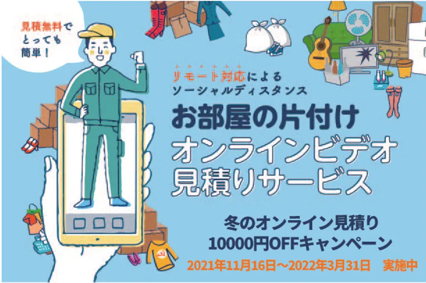 総合サービスを提供するロングテールジャパン株式会社(所在地:神奈川県相模原市、代表取締役:岡村 幸次)は、新型コロナウイルスなど流行感染症対策及び当社見積りご依頼時に各種要件により対応できない各事案に迅速に対応するため、お客様のスマホに直接ショートメールにてオンラインビデオシステムにアクセスできるURLを送らせていただく「ビデオトーク」サービスを利用した「オンラインビデオ見積もりサービス」の提供を、令和2年8月1日よりスタートさせていただいておりますが、もっと多くのお客様にご利用いただけるよう「冬のオンライン見積もりご契約時作業代金10000円OFFキャンペーン」を2021年11月16日~2022年3月31日まで実施いたします。