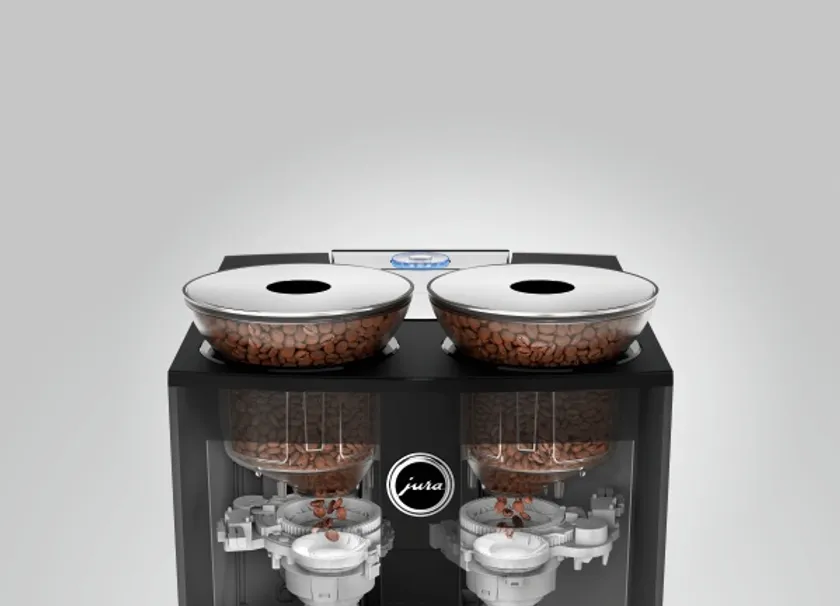 GIGA 6に搭載された2つの電子制御式セラミックディスクグラインダーは、非常に硬く丈夫な材質で作られていて耐久性が高く、コーヒー豆を最適な細かさに粉砕します。そしてオートマティックグラインダーアジャストメント(A.G.A.)によって自動で刃のクリアランスを調整し、グラインダーの耐用年数全体にわたって安定した粒度での粉砕を可能にします。グラインダーが2基搭載されているので2種類のコーヒー豆を使用でき、個別に抽出、もしくは2種類をブレンドしての抽出もできます。ブレンドの割合は25%単位で調整でき(たとえば、左100%、左75%/右25%、左50%/右50%など)、いつでもお好みの割合でマシンが完璧にブレンドします。