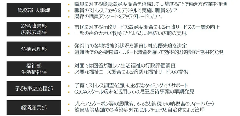 自治体各部局で想定される活用例