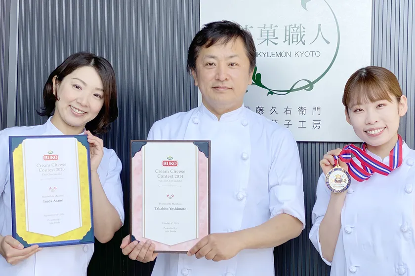 2014年BUKOクリームチーズコンテスト入賞や2015年ノエルアリダスイーツコンテスト優勝、他受賞歴多数のグランシェフ吉本のもとで、日々研鑽を積んできたふたりの抹茶パティシエールも、「デンマークチーズブコスイーツコンテスト」や「Tarte-1グランプリ」「チョコレートイノベーションコンテスト」等のスイーツコンテストで入賞しております。