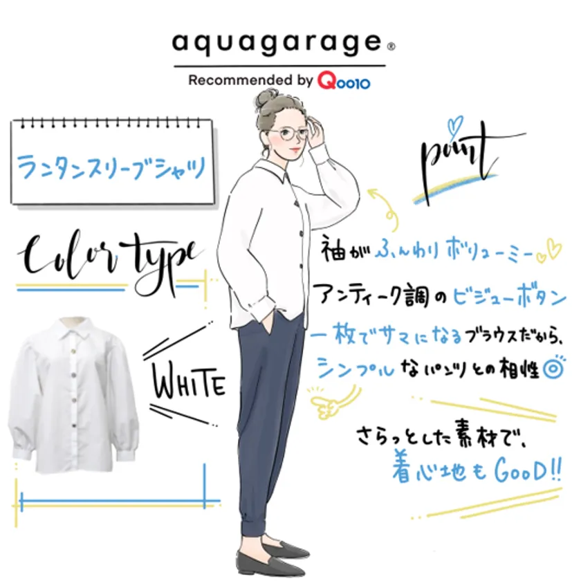 人気のコーナー、Qoo10 コーデ『今日のりおポチ』では、内田理央さんのこの秋のおススメファッションアイテムとしてaquagarageのランタンスリーブシャツが紹介されました。