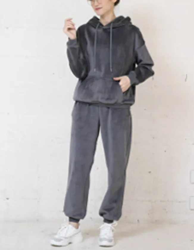 肌触りの良いベロア素材のあったかセットアップ。光沢のあるしっかりとした生地は高見え効果もあり、ワンランク上の“お洒落なジャージ”感が漂います。上下別々でも着られるので使い勝手も抜群です。裏起毛で防寒性があるため、ちょっとした外出にも便利。滑らかな肌触りで着心地が良く、ファッション性と快適さを兼ね備えたルームウェアやパジャマとしてもぴったりで、真冬まで大活躍のアイテムです。