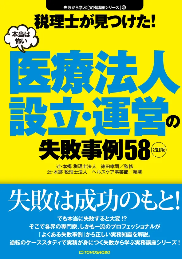 創業60有余年、ビジネス実務の専門出版社、株式会社東峰書房(本社:東京都新宿区/代表取締役社長:鏡渕 敬)は、2021年11月3日(祝・水)、「医療法人の設立・運営」の「失敗事例」に絞って解説した書籍「〈2訂版〉税理士が見つけた!(本当は怖い)医療法人設立・運営の失敗事例58」<監修:徳田 孝司/編著:辻・本郷 税理士法人 ヘルスケア事業部(定価:1,760円税込)>を発売します。