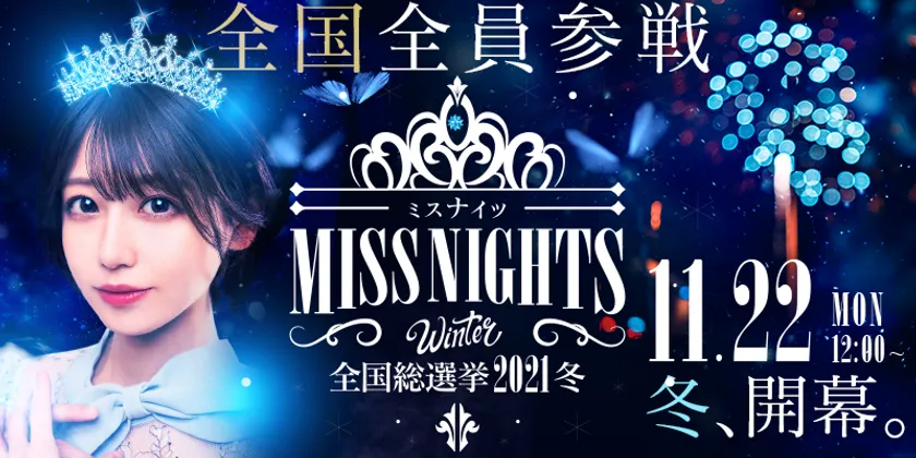 ナイツネット編集部が開催し、年々投票数が増加し好評を博している全国ミスナイツ総選挙を今冬も開催いたします。開催に先立ち、2021年11月1日12:00から、【全国ミスナイツ総選挙2021冬】の特設ページを公開いたします。今回は全キャストの98.1%が参加する過去最大規模で開催いたします。