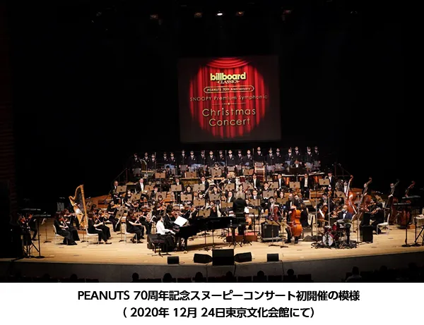 ビルボードジャパン(株式会社阪神コンテンツリンク〔阪急阪神ホールディングスグループ〕本社:大阪市福島区、代表取締役:清水 奨)は、株式会社ソニー・クリエイティブプロダクツ(本社:東京都港区、代表取締役:大竹 健)がライセンスエージェントをつとめるチャールズ・M.・シュルツ原作のコミック「PEANUTS」の権利元であるPeanuts Worldwide LLC(米国NY)との合意により、昨年初開催した「PEANUTS生誕70周年」記念コンサートの第2弾として「ビルボードクラシックス スヌーピー プレミアム・シンフォニック・クリスマスコンサート2021」を開催、チケットは明日10/30(土)10時から一般発売となります。