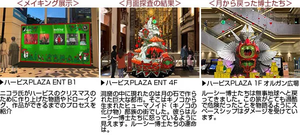 昨年、ニコラ・ビュフ氏が “月への旅行”をテーマにストーリーを描き、ハービス館内の装飾を手掛けた「UN VOYAGE DANS LA LUNE ~月への旅行~」から1年。今年は「UN VOYAGE DANS LA LUNE ~月への旅行/新しい発見と出会い~」として、物語が完結を迎えます。
