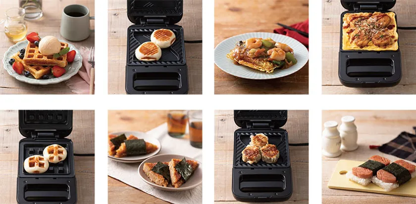 ホットサンドプレートとワッフルプレート、2種のプレートが付属します。ホットサンドだけでなく、肉まんやシュウマイを焼いたり、ワッフルプレートで焼きおにぎりを作ったり、毎日のおうち時間をより充実させるアイテムです。