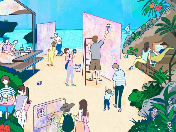 星のや沖縄に隣接する国内最大級の海カフェ「星野リゾート バンタカフェ」では、次世代の沖縄カルチャーを牽引(けんいん)するアーティストが、作品で敷地内を彩る「海辺のアートフェスティバル」を開催します。ライブペイントやワークショップが開催され、海辺のミュージアムショップがオープンします。施設内に点在するアートによって、海辺の景色をより鮮やかに楽しめます。