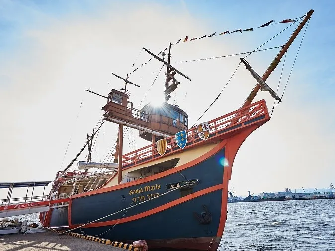 コロンブスが新大陸に到達した時の旗船「サンタマリア号」を約2倍の大きさで建造した、大阪ベイエリアを巡る観光船。