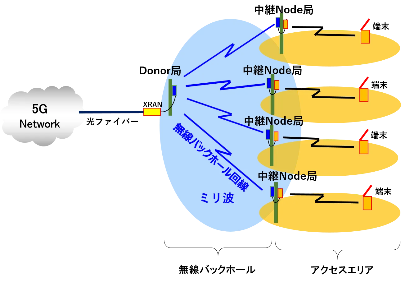 両社は、5Gシステムを構成する基地局において、ネットワークに接続されるDonor局とアクセスエリアを構成する中継Node局間のバックホール回線を5Gミリ波で接続するシステムの開発を共同で行います。本システムは、光ファイバーが利用できない地域や、施設コストが高くなる地域に5G基地局を迅速かつ効果的に配備することができます。また、システムを構成する全ての機器にO-RANインターフェース※1を採用しており、様々な5Gネットワークに接続することが可能となります。