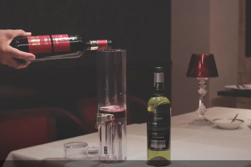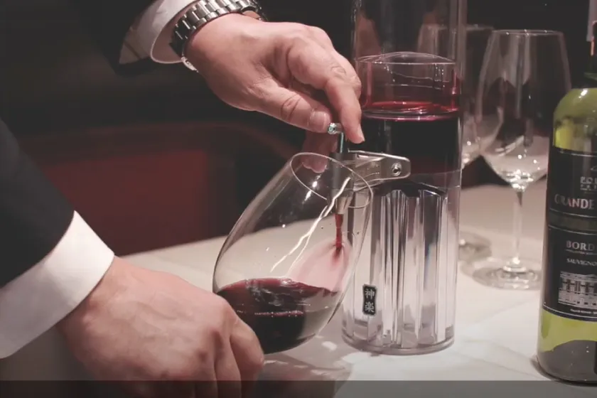 *澱を自動集積する構造(八カ国登録特許)でソムリエのテクニック無しに澱を含まずグラスに注げる