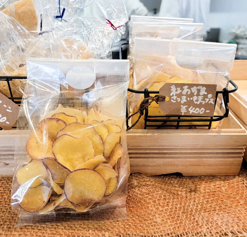 うみまちテラス内にチャレンジショップとして2021年9月にオープンした「カフェアマヤドリ」では、マルシェ当日に「さつまいもチップス(さつまいもを油で揚げたお菓子)」を販売し、多くの方にご好評をいただきました。