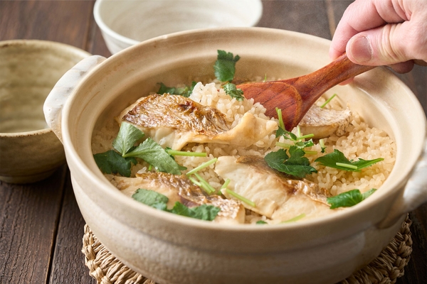左)鯛を土鍋や釜に丸ごと一匹入れて炊き込んだ郷土料理「鯛めし」。鯛ならではの上品な旨みがつまったご飯をぜひご賞味ください。