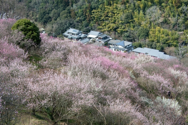 左)七折梅園 例年の見ごろ:2月下旬~3月上旬 / 宿から車で約40分