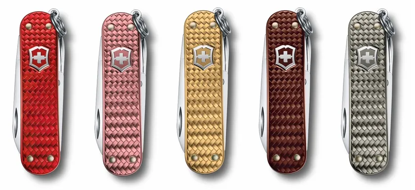 「クラシック プレシャスALOX」は、人気のスモール・マルチツールに、次世代の新たな立体的感触が味わえる商品として生まれました。アルミハンドルは3Dプリントでイントレチャートのように編込んだようなデザインに仕上げ、アイコニックレッド、ジェントルローズ、インフィニットグレー、ブラスゴールド、ヘーゼルブラウンの洗練された5色で展開します。