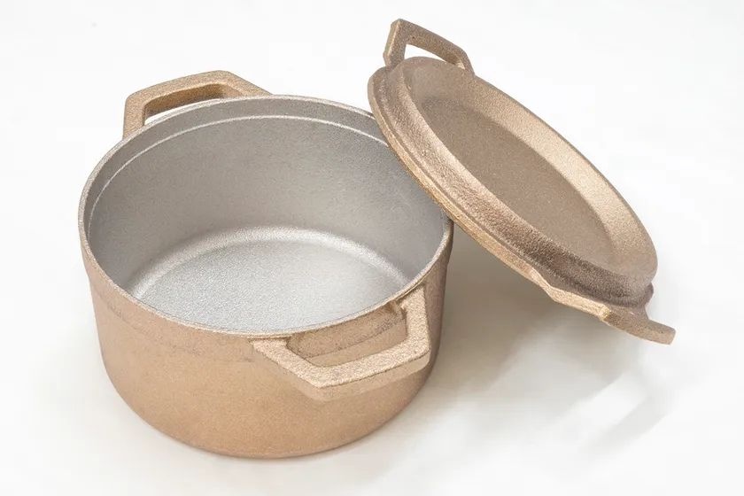 銅合金製鋳物鍋は、銅の熱伝導の良さで素早く鍋全体が温まり、底面4.0mmの厚さで、蓄熱性の高さも兼ね備える、理想的な鍋が出来ました。