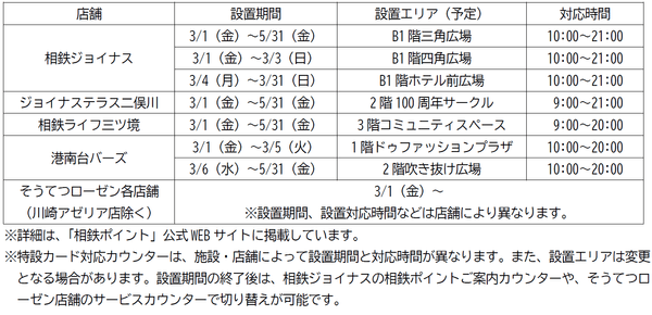 ・主な特設カード対応カウンター(切り替えだけでなく「相鉄ポイントカード」の新規発行も可能です)