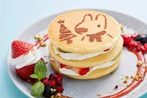リサとサンタが一緒に登場。クリスマスをモチーフにしたパンケーキ。