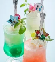 爽やかトッピングにクリスマスカラーを取り入れた色とりどりのクリームソーダ。