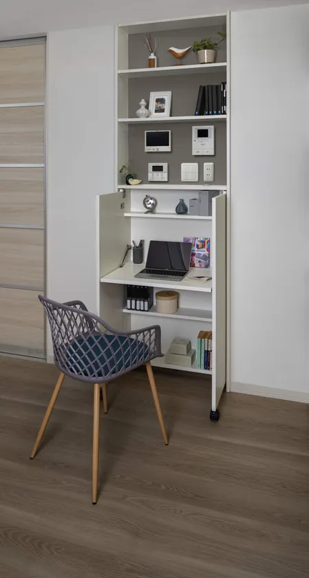 “部屋のスペースが限られていて、デスクや椅子を置いたままにすると部屋が狭くなる”といった声にも応え、使わない時は収納できるのも『ノマド書斎』の良いところ。