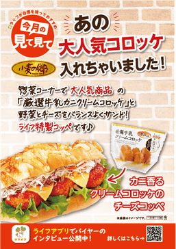 “おいしい” “ワクワク” “ハッピー” をお届けするライフコーポレーションは、11月1日(月)に「カニ香るクリームコロッケのチーズコッペ」を首都圏の“小麦の郷”がある店舗で新発売いたしました。