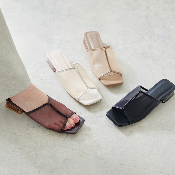 商品名 : menue(メヌエ) スクエアトゥクリアヒールストラップサンダル