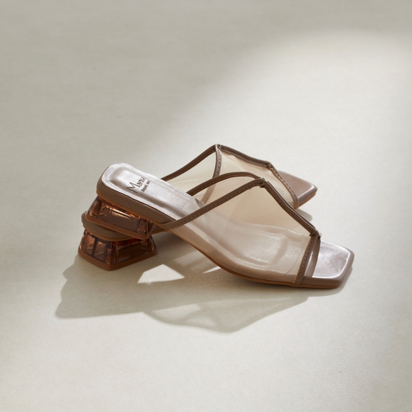 商品名 : menue (メヌエ) スクエアトゥ 多角形 クリアヒール サンダル