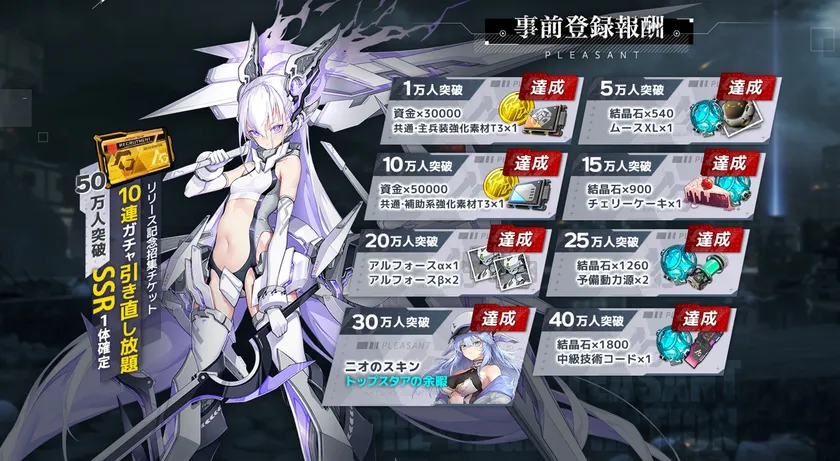 ・事前登録者数50万人達成で10連ガチャが無限に引き直し可能に! 達成まであとわずか!