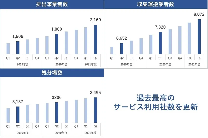 株式会社イーリバースドットコム(東京都江東区、代表取締役社長:高橋 巧、以下 当社)は、このたび産業廃棄物の電子マニフェストサービス「e-reverse.com」の2021年度上半期(2021年4月~9月)において、過去最高のサービス利用社数(排出事業者:2,160社、収集運搬業者:8,072社、処分場:約3,495ヶ所)を更新した事を発表いたします。
