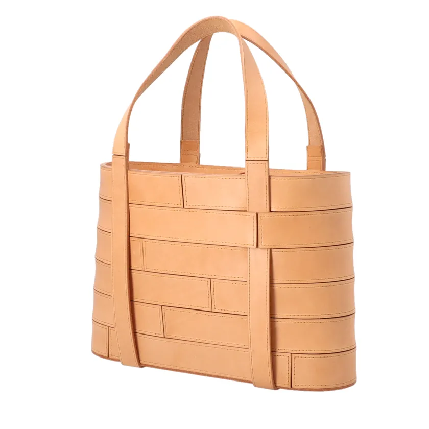 「一枚革にしろ、ハギにしろ、厳密な色合わせをしようとすると革の選択や歩留りが悪くなります。木工では幅ハギという、目の違いや反りなどの欠点を利点に変える手法が確立されています。今回の作品は、半裁のBランク品から良好な部分を切り出していますが、基尺はA3切革2枚で採れるようにしました。下部角の張替え、ハンドルの交換も考慮して構成しています」