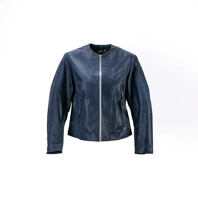 「極薄に漉きをかけたホースハイドを使用したこのレザージャケットの特徴は、「セーターより軽い重量」と「ポーチに収納できる携帯性」です。デザインはクラシックなスタイルですが、小さくたたんでポーチに入れて持ち運ぶ事ができます。レザージャケットは格好いいと思うけど、重くて固くて着心地が悪いというイメージで敬遠している方に着て頂きたいジャケットです」