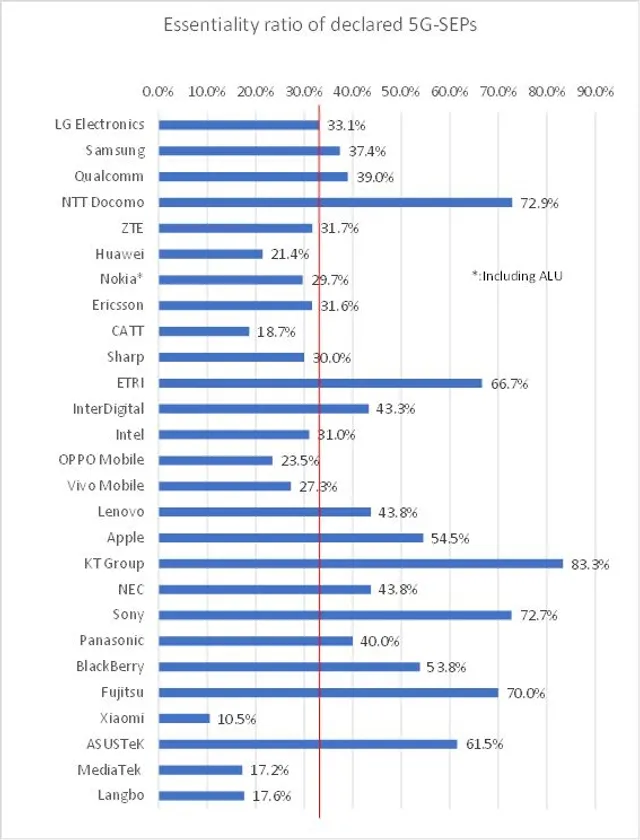 標準化団体への5G-SEPとしての特許宣言は、各企業の自己申告で行われているため、5G標準規格で必須といえないものも宣言されていると言われています。このため、5G-SEP宣言特許の件数を単純に比較するだけでは、主要企業等の本当の実力は明確にならないという問題がありました。